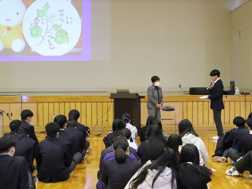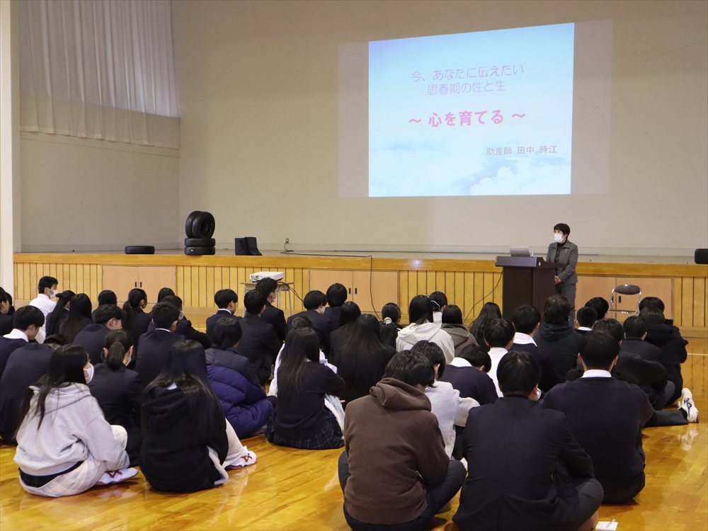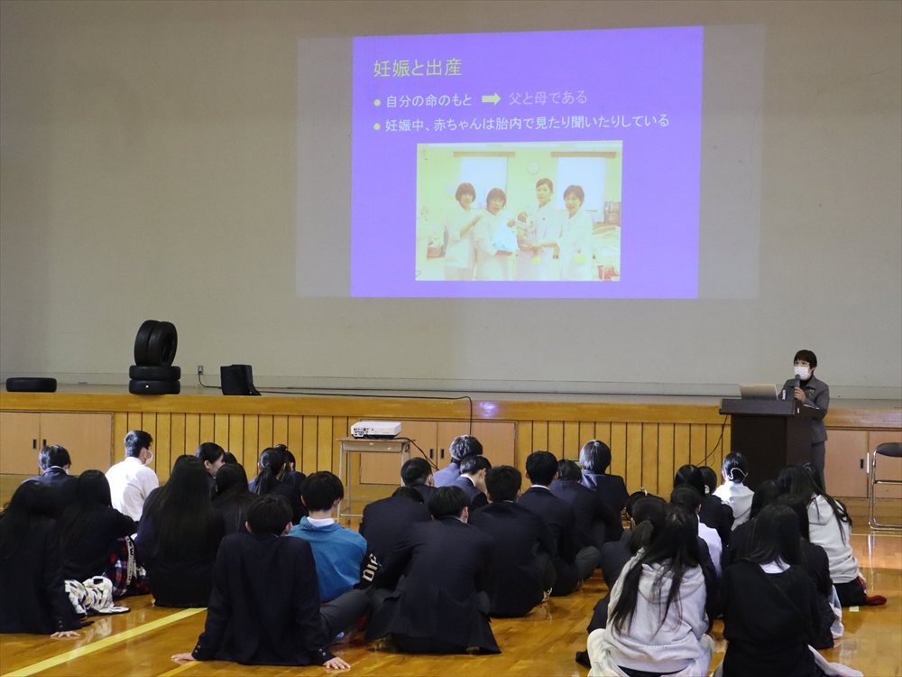 妊娠と出産、男女交際、性感染症など、これから高校を卒業し、新たなステージに向かっていく3年次生にとって大切な内容をたくさん教えていただきました。先生ご自身が助産師として勤務されていたときのお話も聞くことができ、「自分の命を愛してあげましょう」という先生の温かいメッセージが心に響きました。