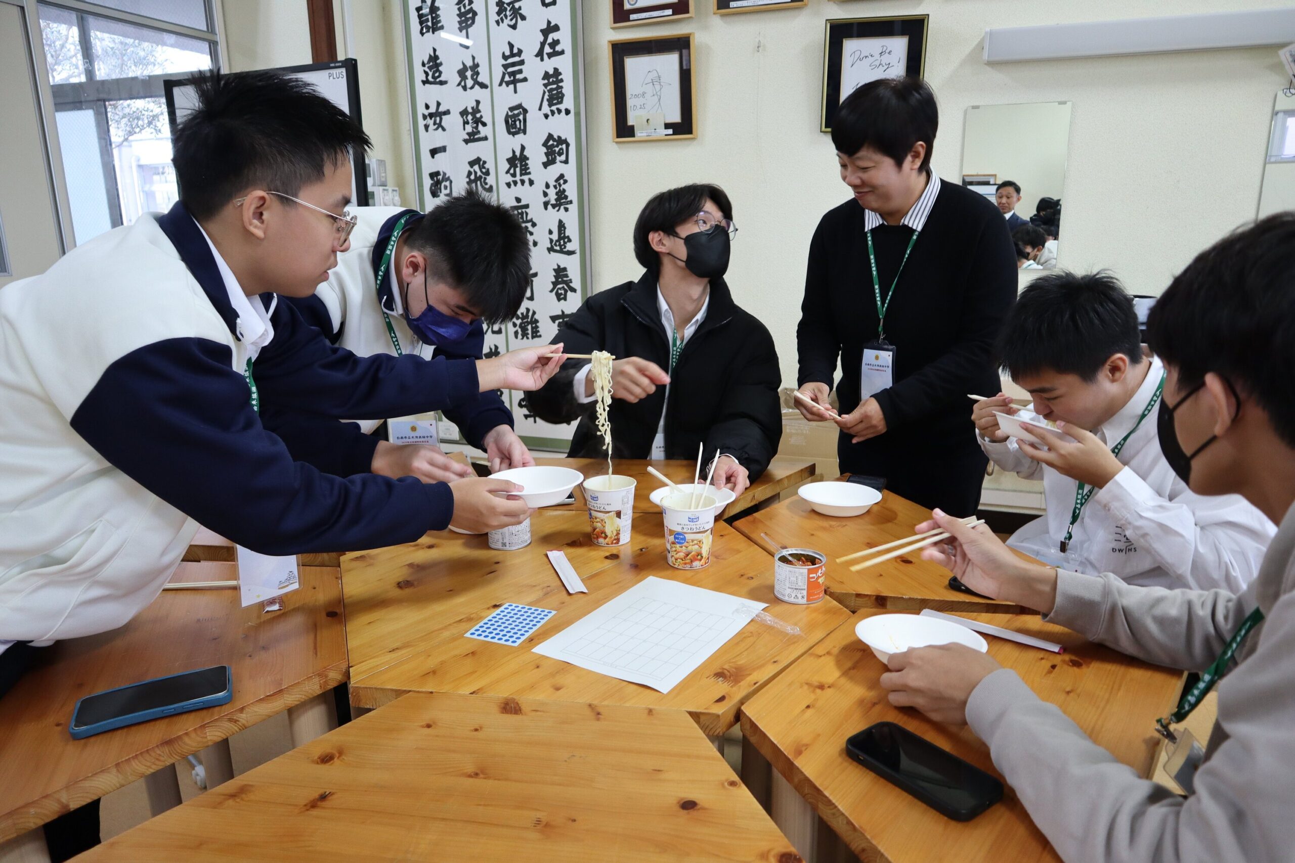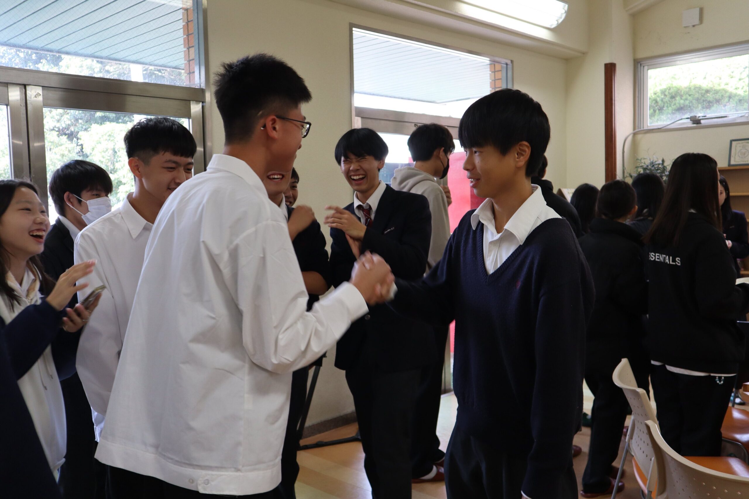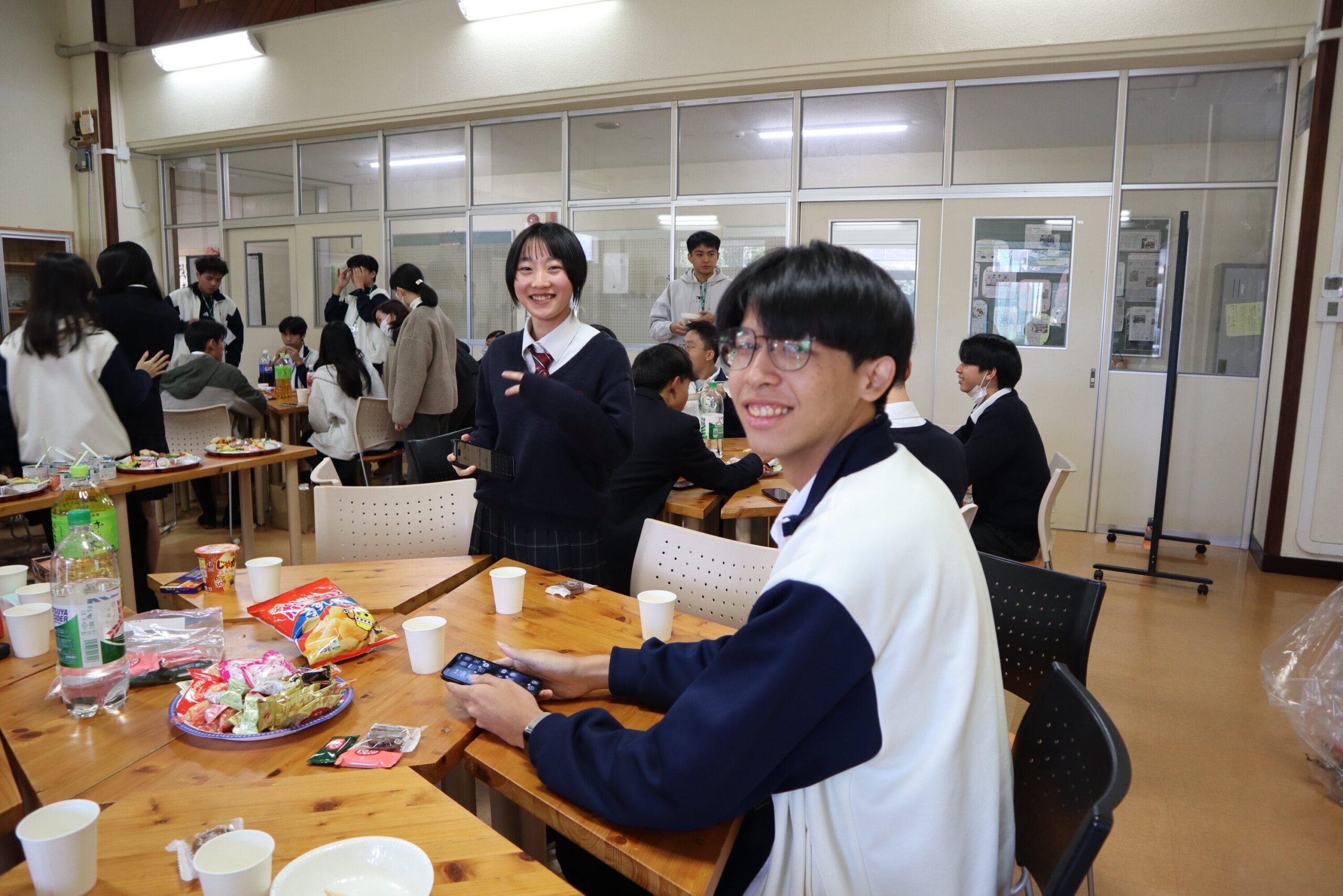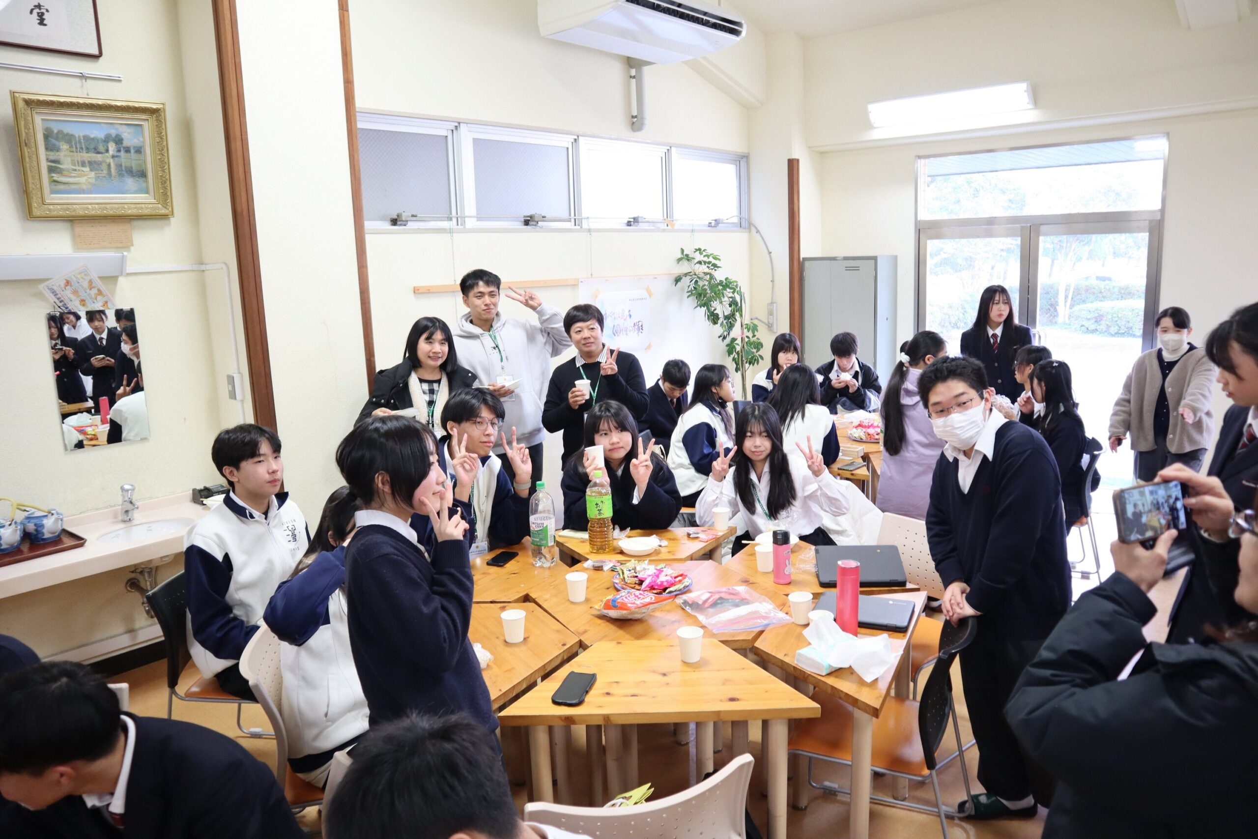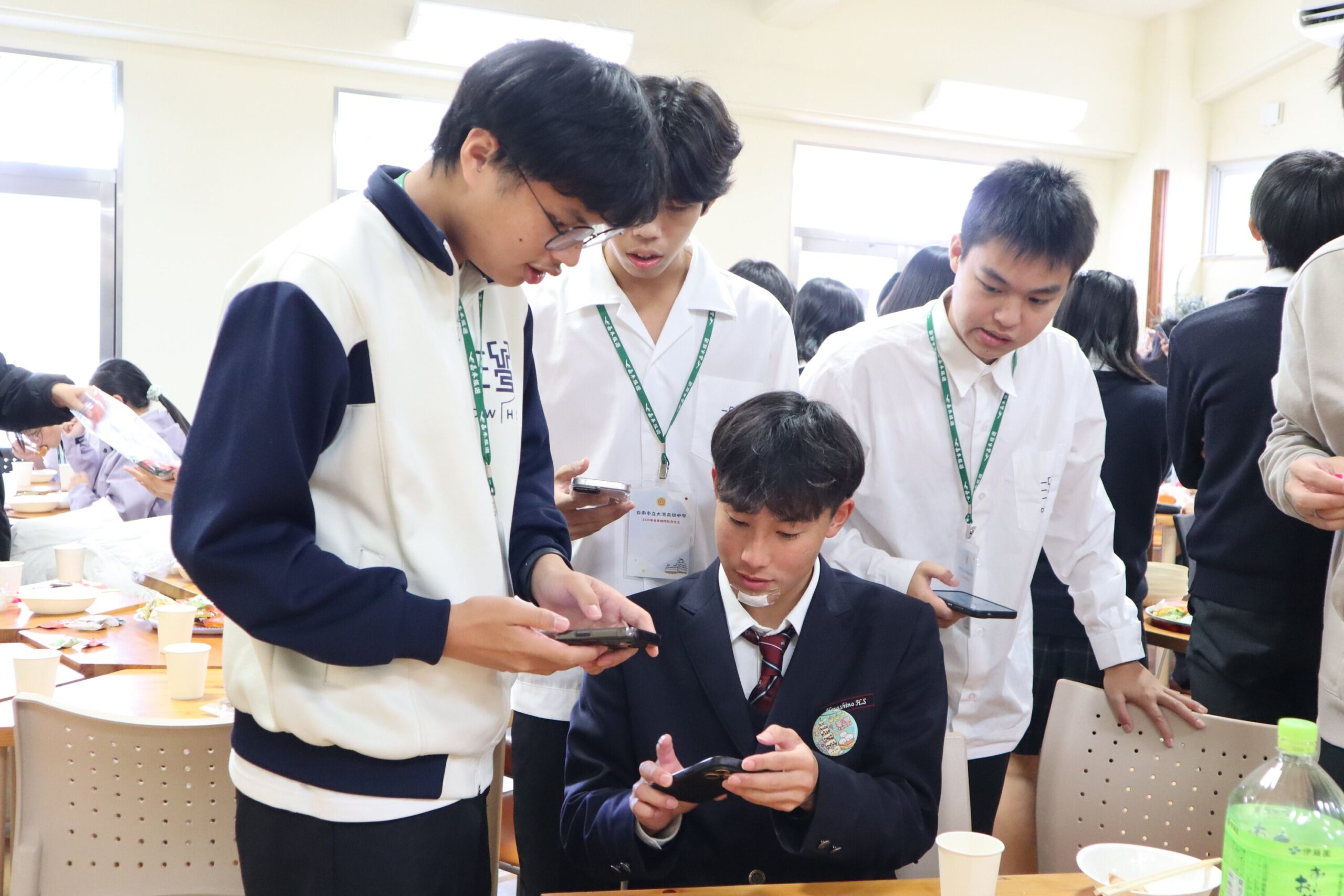1・2限目には、台湾の生徒が本校の授業に参加しました。3限目には、「コノヒトカン」を活用し、防災食のレシピを協働で考える活動を行いました。4限目には、本校の国際交流参加者を中心にフェアウェルパーティーを実施しました。オードブルやお菓子を囲みながら、写真撮影や色紙へのメッセージ記入などを行い、対面ならではのコミュニケーションを楽しんでいました。今回の交流は、対面ならではのつながり、温かさを実感できる非常に貴重な体験となりました。